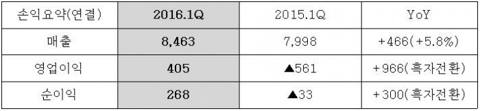 전년 동기 대비 매출액은 466억원, 영업이익과 당기순이익은 각각 966억원과 300억원이 증가하며 흑자전환했다.