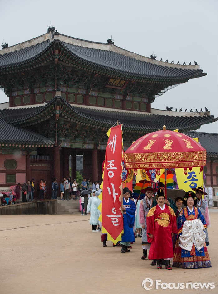 조기태 세종마을가꾸기회 대표는 "탄신 행사를 연례적으로 마련함으로써 국민들이 세종대왕의 위업을 선양하고 세종 정신을 기리길 바란다"고 밝혔다.(서울=포커스뉴스) 세종대왕 탄신 619주년인 15일 오후 서울 종로구 경복궁 일대에서 세종대왕 어가행렬이 재현되고 있다. 2016.05.15 이승배 기자 (서울=포커스뉴스) 세종대왕 탄신 619주년인 15일 오후 서울 종로구 경복궁 일대에서 세종대왕 어가행렬이 재현되고 있다. 2016.05.15 이승배 기자