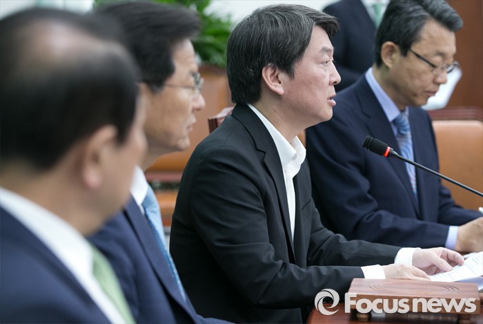 (서울=포커스뉴스) 안철수(왼쪽 세번째) 국민의당 상임공동대표가 16일 오전 서울 여의도 국회에서 열린 최고위원회의에 참석해 모두발언을 하고 있다.