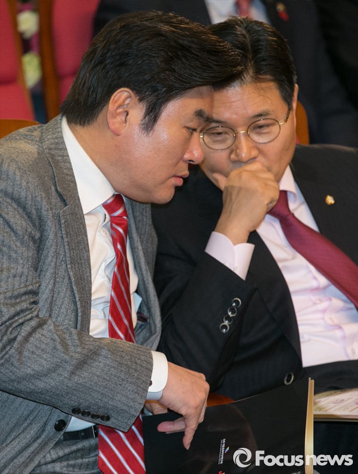 홍 의원은 "이 역시 객관성을 담보로 하는 비대위가 되는가 하는 것에 대해 우려를 많이 표시하고 있다"며 "비대위나 혁신위를 바라보고 있는 일반 당원이나 의원들은 생각이 다른 분들이 좀 계시다"고 지적했다.26일 오후 서울 여의도 국회 의원회관에서 열린 15회 대한민국 국회대상 시상식에 참석한 원유철(왼쪽) 새누리당 원내대표와 홍문종 의원이 대화하고 있다. 2016.01.26 박동욱 기자