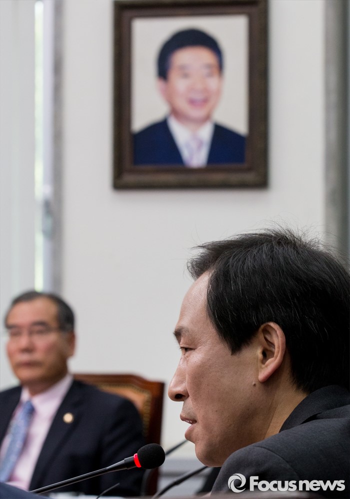 (서울=포커스뉴스) 16일 오전 서울 여의도 국회에서 열린 더불어민주당 제34차 비상대책위원회의에 참석한 우상호 원내대표가 모두발언 하고 있다.