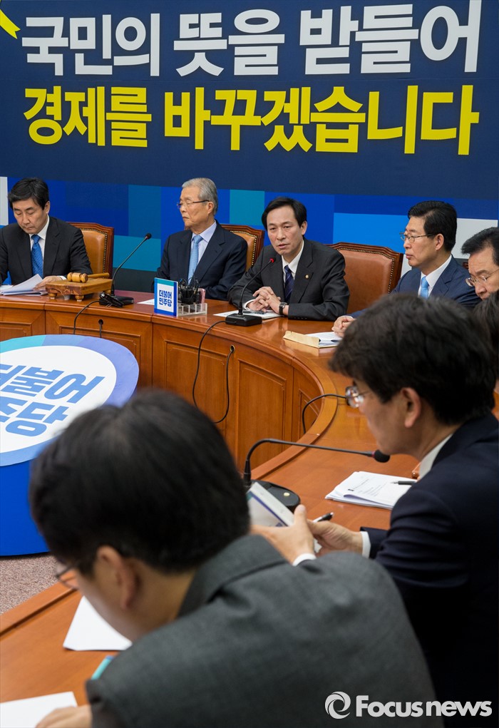 (서울=포커스뉴스) 16일 오전 서울 여의도 국회에서 열린 더불어민주당 제34차 비상대책위원회의에 참석한 우상호 원내대표가 모두발언 하고 있다.