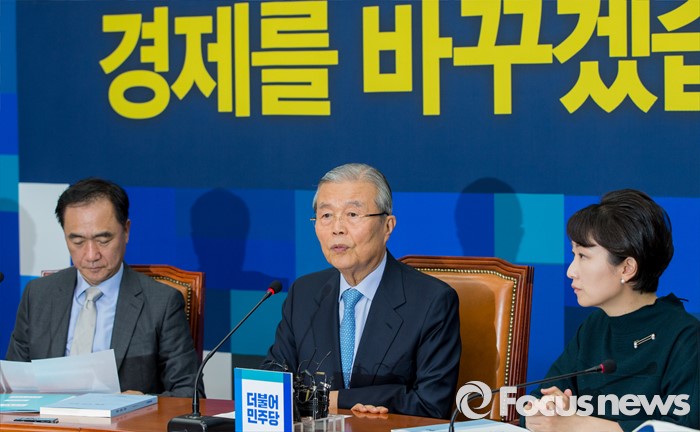 (서울=포커스뉴스) 16일 오전 서울 여의도 국회에서 열린 더불어민주당 1차 조직강화특위회의에 참석한 김종인(가운데) 비상대책위원회 대표가 모두발언 하고 있다.