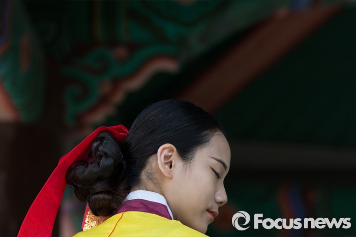 (서울=포커스뉴스) 16일 오전 서울 중구 남산골 한옥마을 천우각 광장에서 열린 제44회 성년의 날 행사에 참석한 학생들이 행사에 앞서 사진을 찍고 있다.