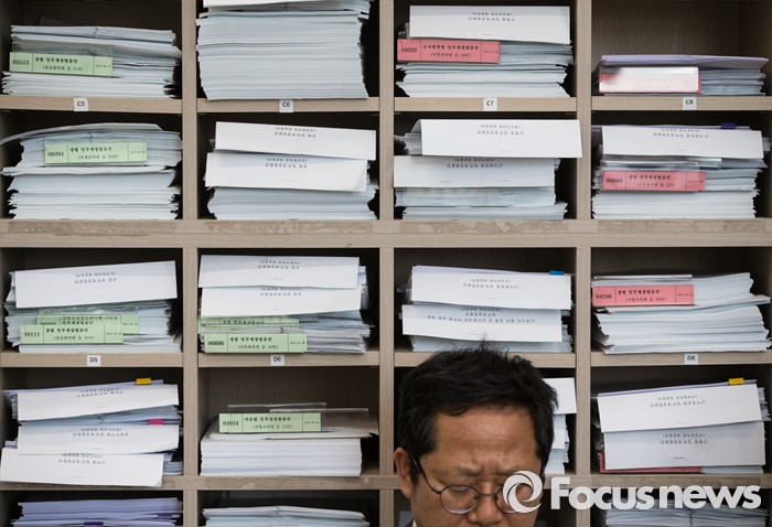 (서울=포커스뉴스) 16일 오후 서울 여의도 국회에서 열린 법제사법위원회에 법안심사1소위에 처리해야 할 법률안이 쌓여 있다.