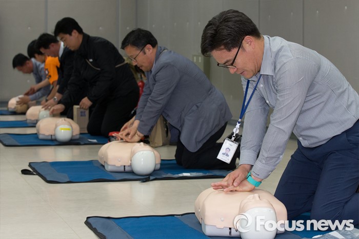 | △ 심폐소생술 교육받는 공무원 |