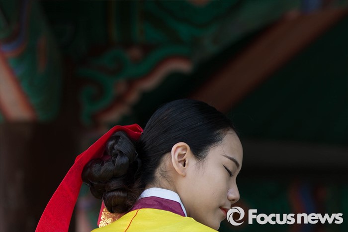 (서울=포커스뉴스) 16일 오전 서울 중구 남산골 한옥마을 천우각 광장에서 열린 제44회 성년의 날 행사에 참석한 학생들이 행사에 앞서 사진을 찍고 있다.