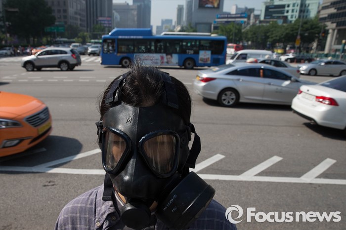 (서울=포커스뉴스) 17일 오전 서울 종로구 광화문광장 인근에서 서울환경연합원들이 경유차 활성화 정책 철회를 촉구하며 퍼포먼스를 벌이고 있다.
