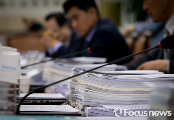 (서울=포커스뉴스) 17일 오전 서울 여의도 국회에서 열린 법제사법위원회 전체회의에 참석한 의원들이 법안 관련 자료를 살펴보고 있다.