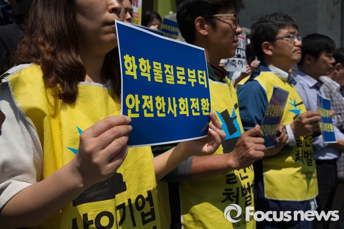 (서울=포커스뉴스) 17일 오전 서울 종로구 세종문화회관 앞에서 환경 및 시민단체와 가습기 살균제 피해자들이 가습기 살균제 사고에 대한 근본적 대책마련을 촉구하며 기자회견을 하고 있다.