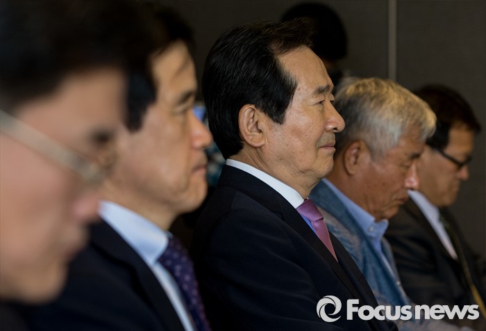 (서울=포커스뉴스) 17일 오후 서울 중구 플라자호텔에서 열린 경제사회발전 노사정위원회 역대 상임위원 간담회에서 초대 상임위원을 맡았던 정세균(가운데) 더불어민주당 의원을 비롯한 참석자들이 김대환 위원장의 인사말을 듣고 있다.