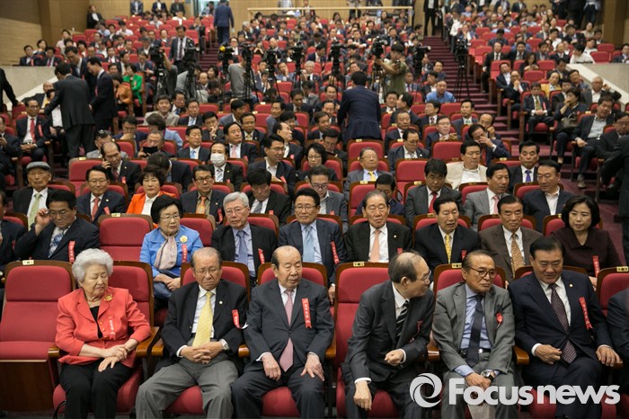 (서울=포커스뉴스) 17일 오후 서울 여의도 국회 의원회관에서 비대위 구성안 및 당헌 당규개정안 등 현안 처리를 위해 예정된 4차 새누리당 전국위원회에 참석한 김수한(앞줄 왼쪽 세번째) 상임고문 등 참석자들이 회의 시작을 기다리고 있다. 이날 전국위원회의는 앞서 예정된 상임전국위원회를 개최해 당헌개정안 등을 심의할 예정이었지만, 친박계 의원들이 대거 불참해 참석자 미달로 회의가 열리지 못 했다.