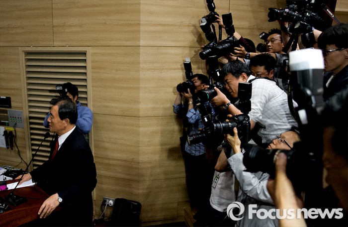 (서울=포커스뉴스) 17일 오후 서울 여의도 국회 의원회관에서 비대위 구성안 및 당헌 당규개정안 등 현안 처리를 위해 예정된 4차 새누리당 전국위원회에 참석한 홍문표 사무총장 대행이 전국위 무산을 알리고 있다. 이날 전국위원회의는 앞서 예정된 상임전국위원회를 개최해 당헌개정안 등을 심의할 예정이었지만, 친박계 의원들이 대거 불참해 참석자 미달로 회의가 열리지 못 했다.