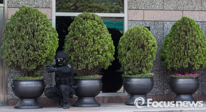 (서울=포커스뉴스) 17일 오후 서울 서초구 JW메리어트호텔 서울에서 민·관·군 관계자들이 2016 재난대응 안전한국훈련을 하고 있다.