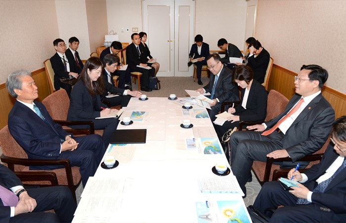 | △ 일본경제단체협의회장과 면담 갖는 주형환 장관 |