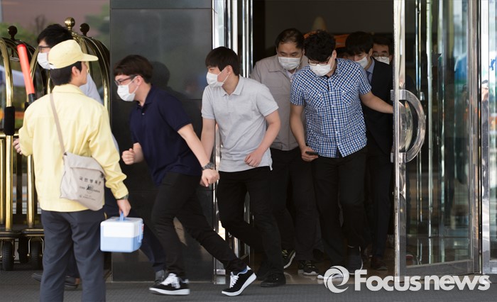 (서울=포커스뉴스) 17일 오후 서울 서초구 JW메리어트호텔 서울에서 민·관·군 관계자들이 2016 재난대응 안전한국훈련을 하고 있다.