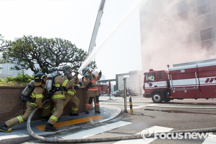 (서울=포커스뉴스) 17일 오후 서울 서초구 JW메리어트호텔 서울에서 민·관·군 관계자들이 2016 재난대응 안전한국훈련을 하고 있다.