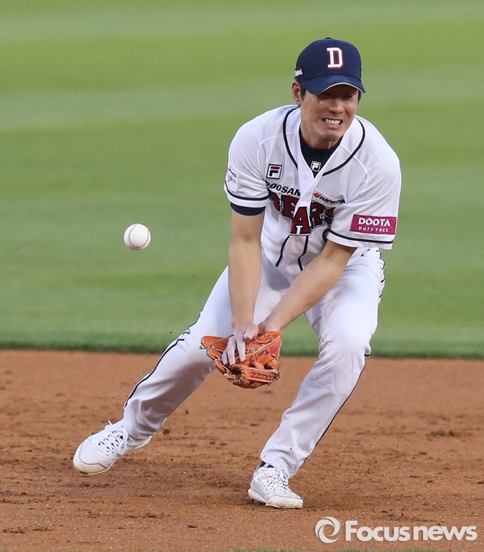 (서울=포커스뉴스) 17일 서울 잠실구장에서 열린 2016프로야구 KIA-두산 경기 2회초 1사 만루에서 두산 유격수 김재호가 KIA 강한울의 땅볼 타구를 놓치고 있다.