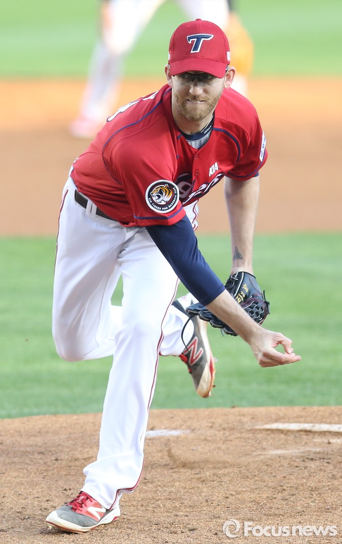 (서울=포커스뉴스) 17일 서울 잠실구장에서 열린 2016프로야구 KIA-두산 경기에서 1회말 KIA 선발투수 지크가 투구하고 있다.