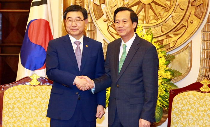 (서울=포커스뉴스) 이기권 고용노동부장관이 베트남 정부 초청으로 17일 베트남을 방문, 따오 응옥 쭝(Dao Ngoc Dung) 베트남 노동보훈사회부 장관을 만나 악수를 하고 있다. <사진제공=고용노동부>