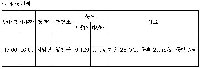 오존주의보가 발령된 지역은 △양천 △강서 △구로 △금천 △영등포 △동작 △관악이다.