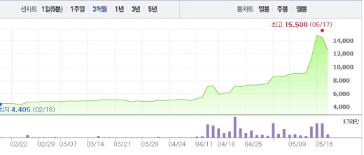 코스닥 시장에서 120위가 넘던 시가총액 순위는 80위권으로 40계단이나 뛰기도 했다.