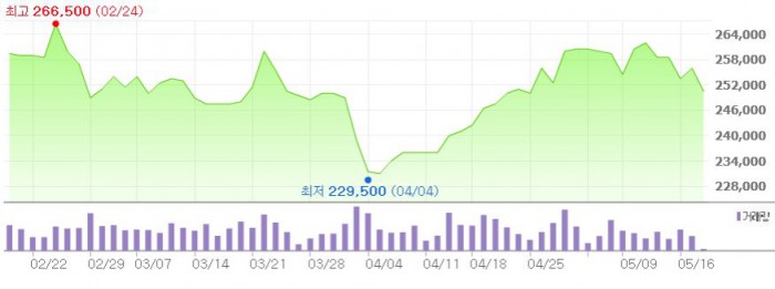이에 따라 현대모비스에 대한 목표주가를 기존 30만5000에서 31만5000원으로 상향 조정했다.최근 3개월간 현대모비스 주가 추이 <그래픽출처=네이버>