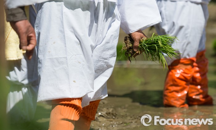 (서울=포커스뉴스) 18일 오전 서울 강남구 양재천 영동4교 인근 벼농사학습장에서 주민들이 모내기 체험 준비를 하고 있다.