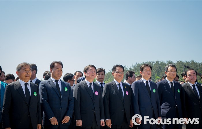 (광주=포커스뉴스) 36주년 5·18민주화운동 기념식이 거행된 18일 오전 광주 북구 운정동 5·18민주묘지에서 안철수 상임공동대표, 박지원 원내대표를 비롯한 국민의당 의원 당선자들이 분향을 기다리고 있다.