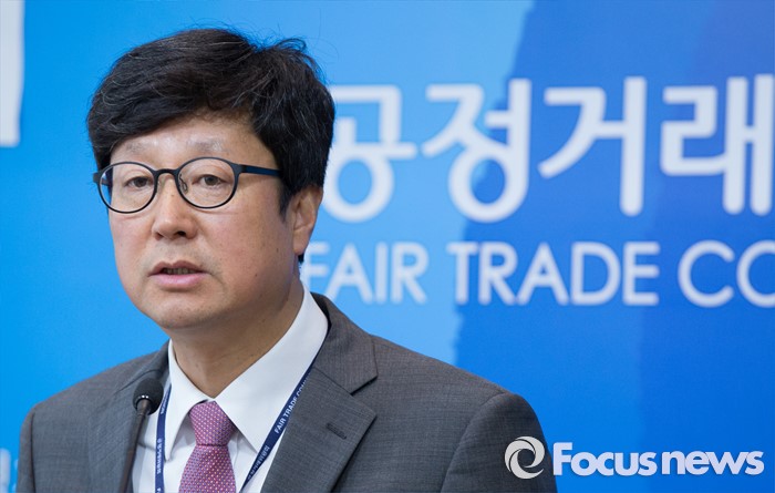 (세종=포커스뉴스) 김재신 공정거래위원회 기업거래정책국장이 18일 오전 세종시 정부세종청사 공정위 기자실에서 대형마트 3사의 대규모유통업법 위반으로 총 238억 원의 과징금을 부과했다고 밝히고 있다.