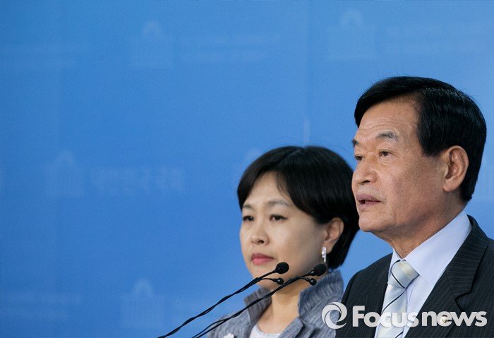 (서울=포커스뉴스) 서상기(오른쪽) 새누리당 의원과 송희경 당선인이 18일 오후 서울 여의도 국회 정론관에서 국방부가 준비 중인 이공계 대체복무 폐지 계획과 관련 현장의견 청취 및 당·정간 논의 필요성 등을 전하는 기자회견을 하고 있다.