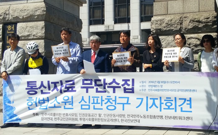 민주사회를위한변호사모임·진보네트워크센터 등 시민단체 연합은 18일 오전 서울 종로구 재동 헌법재판소 앞에서 기자회견을 열고 "변호사·대학교수·언론인·영화인 등 각계각층의 시민들이 국가기관으로부터 무차별적으로 민감정보를 수집 당한 사실을 확인했다"며 "사생활의 비밀과 자유와 통신의 자유를 침해했다"고 주장했다.