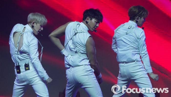 (서울=포커스뉴스) 18일 오후 서울 광진구 예스24 라이브홀에서 열린 아이돌그룹 몬스타X의 세번째 미니앨범 'THE CLEAN PART. 1 LOST' 발표 쇼케이스에 참석한 멤버들이 무대를 선보이고 있다.