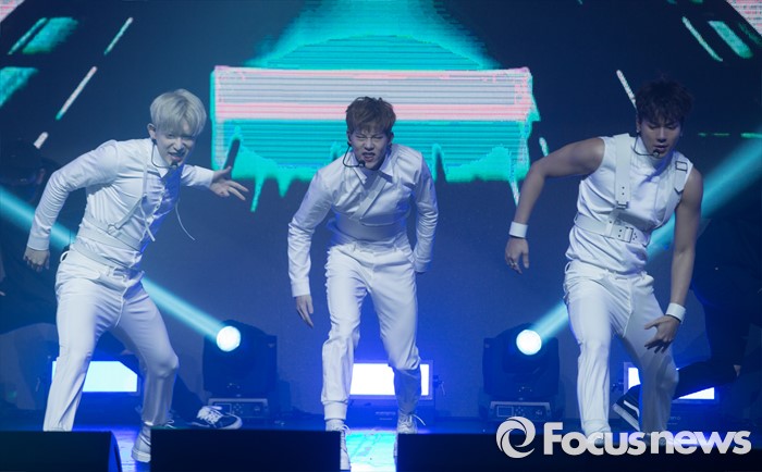 (서울=포커스뉴스) 18일 오후 서울 광진구 예스24 라이브홀에서 열린 아이돌그룹 몬스타엑스의 세번째 미니앨범 'THE CLEAN PART. 1 LOST' 발표 쇼케이스에 참석한 멤버들이 신곡 '걸어l'의 무대를 선보이고 있다.
