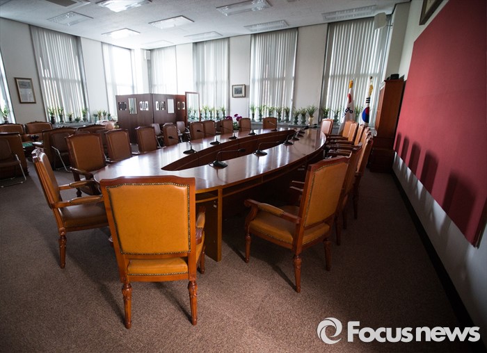 (서울=포커스뉴스) 18일 오후 서울 여의도 국회 새누리당 원내대표실이 텅 비어있다. 정진석 원내대표는 전날 오후 비상대책위·혁신위 추인이 무산되는 사태가 벌어진 후 18일 오전 광주 국립 5·18 민주묘지에서 열린 제36주년 5·18 민주화운동 기념식에 참석하고 지역구인 충남 공주로 자리를 옮겼다.