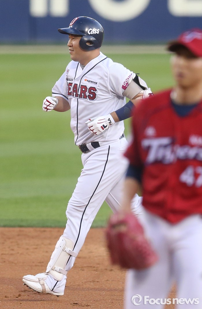 (서울=포커스뉴스) 18일 서울 잠실구장에서 열린 2016프로야구 KIA-두산 경기에서 2회말 두산 선두타자 양의지가 좌월 1점 홈런을 치고 베이스를 돌고 있다.
