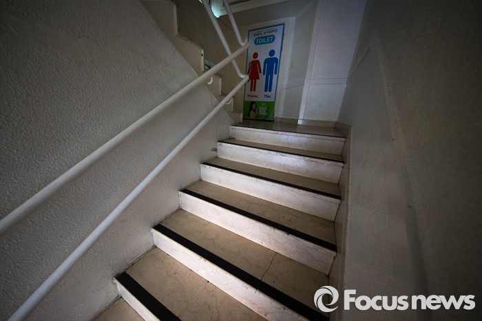 (서울=포커스뉴스) 19일 오전 서울 서초구 강남역 인근 '묻지마 살인' 현장의 화장실이 폐쇄되어 있다.