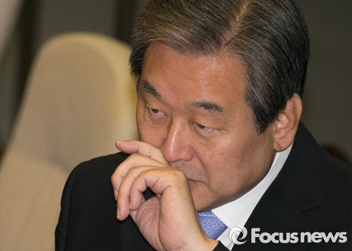 | △ 얼굴 만지는 김무성 |