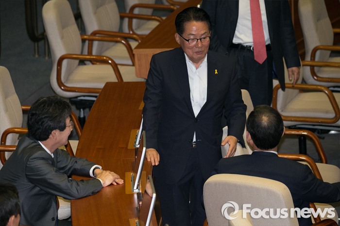 | △ 박지원 원내대표, 무소속 의원들과 대화 |