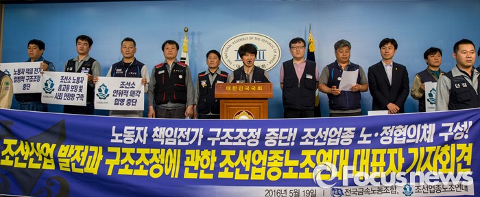 | △ '조선산업 구조조정에 관한 조선업종노조연대 대표자' 기자회견 |