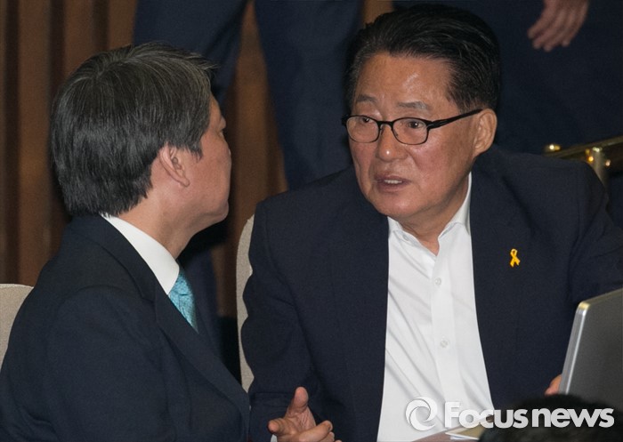 (서울=포커스뉴스) 19일 오전 서울 여의도 국회에서 열린 342회 국회(임시회) 1차 본회의에 참석한 안철수(왼쪽) 국민의당 상임공동대표와 박지원 원내대표가 대화하고 있다.