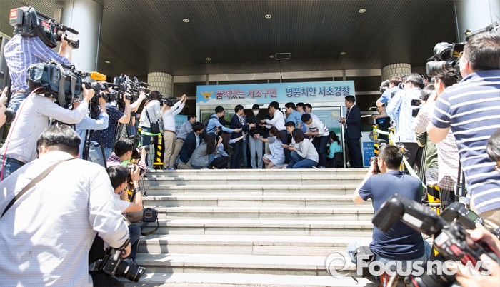 (서울=포커스뉴스) 지난 17일 서울 강남역 인근 노래방 화장실에서 직장인 A씨(23·여)를 흉기로 살해한 혐의를 받고 있는 김모(34)씨가 구속전피의자심문(영장실질심사)을 받기 위해 19일 오후 서울 서초경찰서를 나서고 있다.