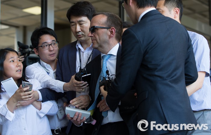 (서울=포커스뉴스) 울리히 호스터바흐 옥시 코리아 재무담당 이사가 소환조사를 받기 위해 19일 오후 서울중앙지방검찰청으로 들어서고 있다.