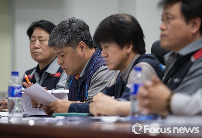 | △ 진지한 표정의 조선업종노조연대 대표자들 |