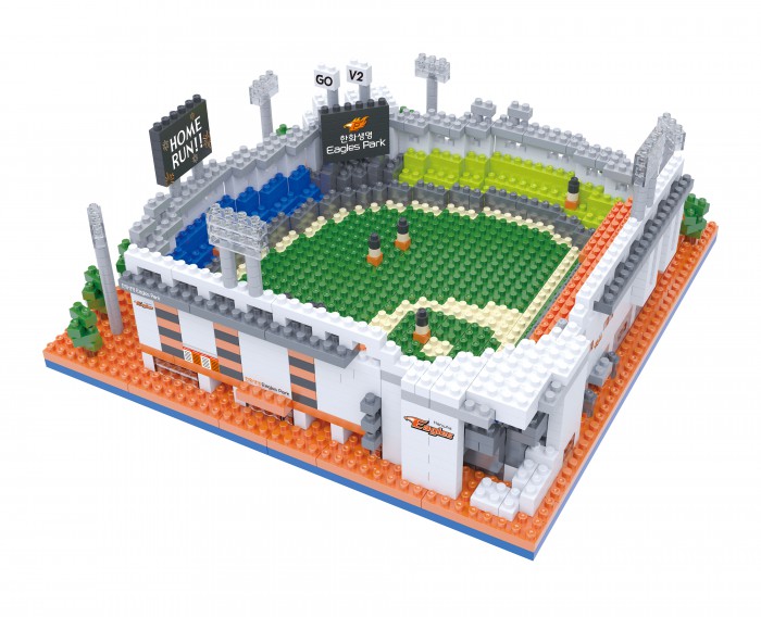나노블럭은 블럭을 쌓아 만드는 레고처럼 브릭완구의 일종이다. 한화구단 공식 온라인쇼핑몰, 소셜커머스 업체 쿠팡 등에서 구입할 수 있다. 가격은 한화생명 이글스 파크 나노블럭은 3만2800원이며 선수별 나노블럭은 각 9900원이다.프로야구 한화가 나노블록 상품을 출시했다. 사진은한화 홈구장 한화생명 이글스 파크 나노블록. <사진제공=한화 이글스>