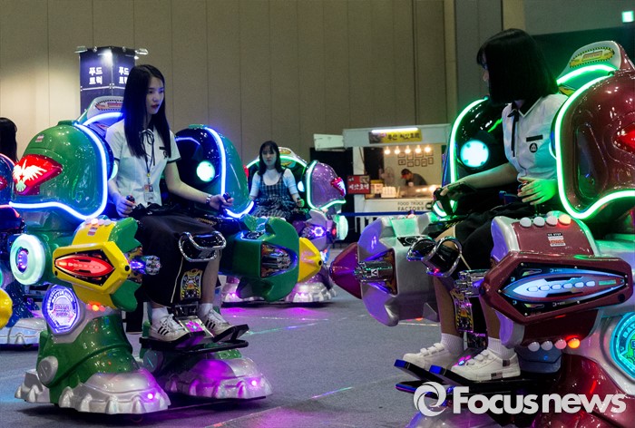 (고양=포커스뉴스) 19일 오후 경기 고양시 킨텍스 제1전시관에서 열린 2016 플레이엑스포를 찾은 관람객들이 로봇게임을 즐기고 있다.