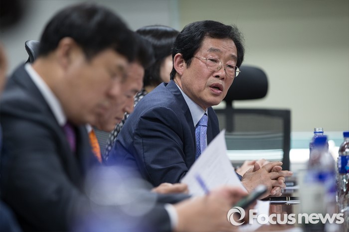 (서울=포커스뉴스) 이용득 더불어민주당 의원이 19일 오후 서울 여의도 국회 의원회관에서 열린 '조선업종노조연대 대표자들과 각 정당 의원 간담회'에서 발언하고 있다.