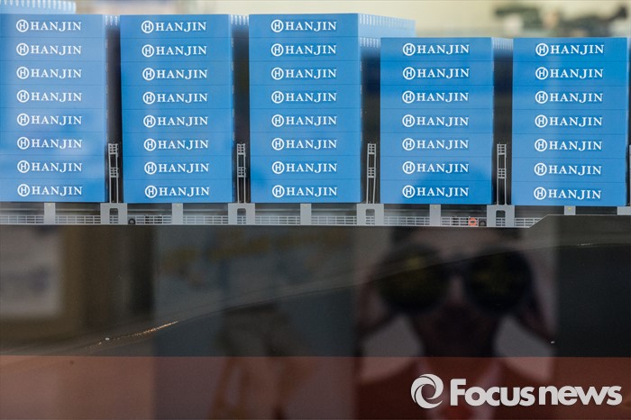 (서울=포커스뉴스) 한진해운의 채무조정을 위한 첫 사채권자 집회가 열린 19일 오후 서울 영등포구 한진해운 본사 로비에 선박 모형이 보이고 있다.