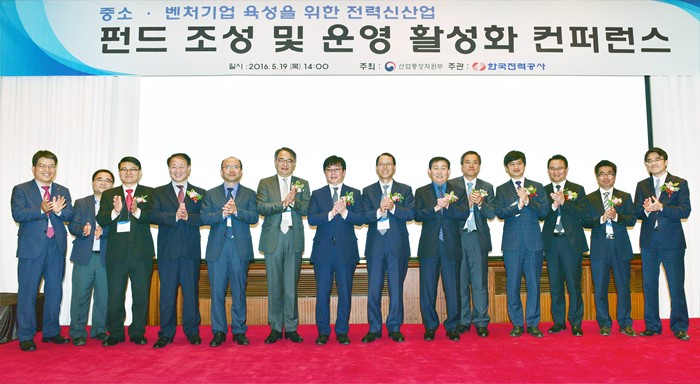 이날 행사에는김시호 한전 부사장, 김수욱 서울대 교수, 정은호 한전 경제경영연구원장, 조효승 키움투자자산운용 본부장, 이동준 산일전기 상무, 김철환 오렌지파워 대표, 신중섭 맥쿼리 코리아 전무와 기업, 창업동아리, 민간운용사 관계자 등 150여명이 참석했다. <사진제공=산업통상자원부>