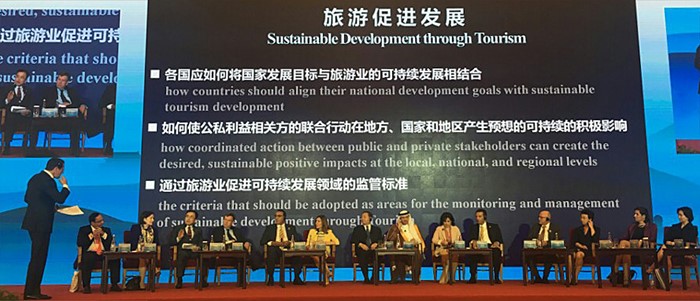 (서울=포커스뉴스) 김종 문화체육관광부 차관이 19일(현지시간) 베이징에서 열린 `제1차 발전을 위한 관광국제회의(First World Conference on Tourism for Development, 5월 18일~21일)`에 참석해 발언을 하고 있다. <사진제공=문화체육광광부>